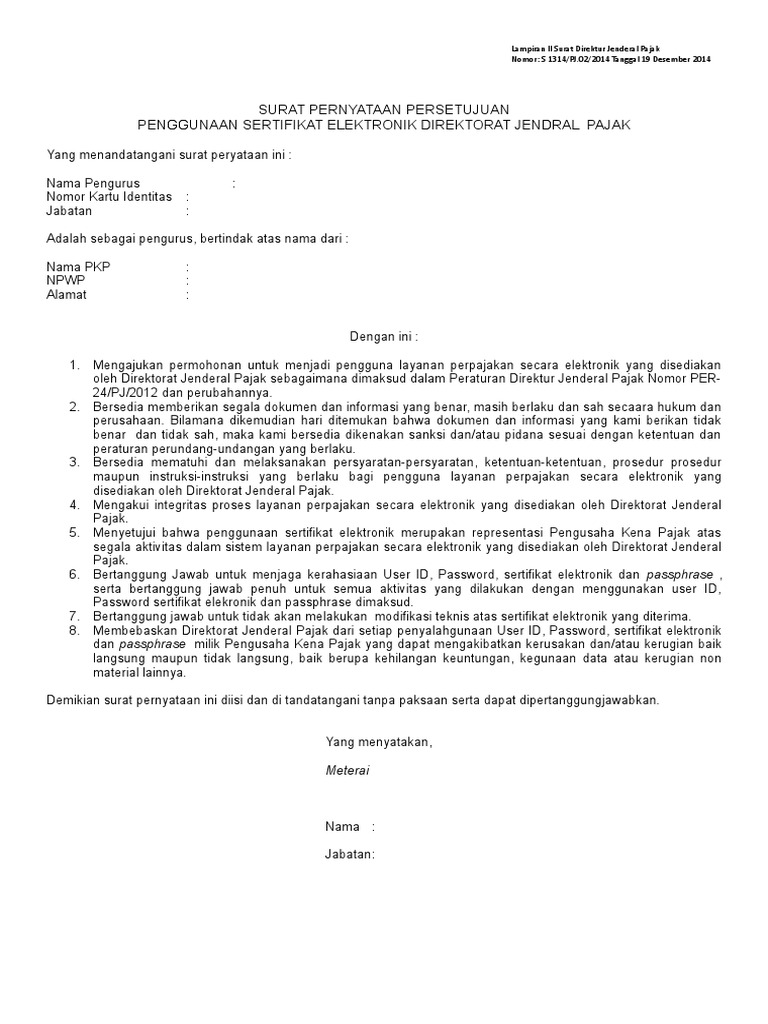 Surat Kuasa Pajak Contoh Syarat Pembuatan Dan Penggunaannya from klikpajak.id We did not find results for: Maybe you would like to learn more about one of these? Check spelling or type a new query. Dowload surat pernyataan setifikasi elektronik.
